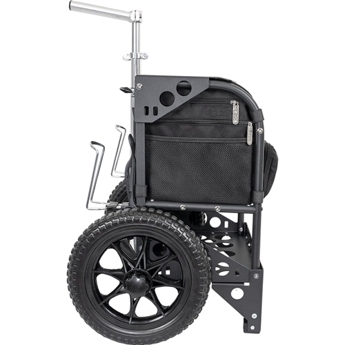 The Transit Cart is the newest Dynamic Discs cart, and it’s our first independent cart - you don’t need a disc golf backpack bag to use it! Storage is no problem as it will hold up to 25 discs comfortably. As with the Backpack Cart and LG Cart, the top of the frame opens up for easy access to the top compartment, but it also closes and doubles as a portable seat. The Transit comes with a removable, hand-washable insert bag made from water-resistant polyester, so it’s easy to clean and maintain. The insert bag has large zippered sections for easy access to discs and other on-course needs. Below the insert bag, we’ve included a gear platform to carry additional items. Our backpack carts come standard with all-season, tubeless foam performance tires that keep rolling over rocks, sand, snow and rough terrain, so you don’t have to worry about getting a flat, and they have sealed bearings for low maintenance and a smooth ride. With a 51” telescoping handle so that disc golfers of all heights can use it, the Transit Cart is another fantastic cart option from Dynamic Discs and ZUCA!